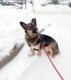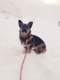 На улице приучается к поводку, пока не очень понимает, зачем человек на том конце поводка, и останавливается через какое-то время. Но старается.